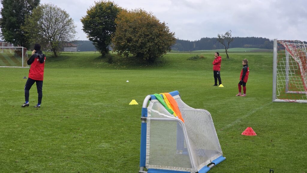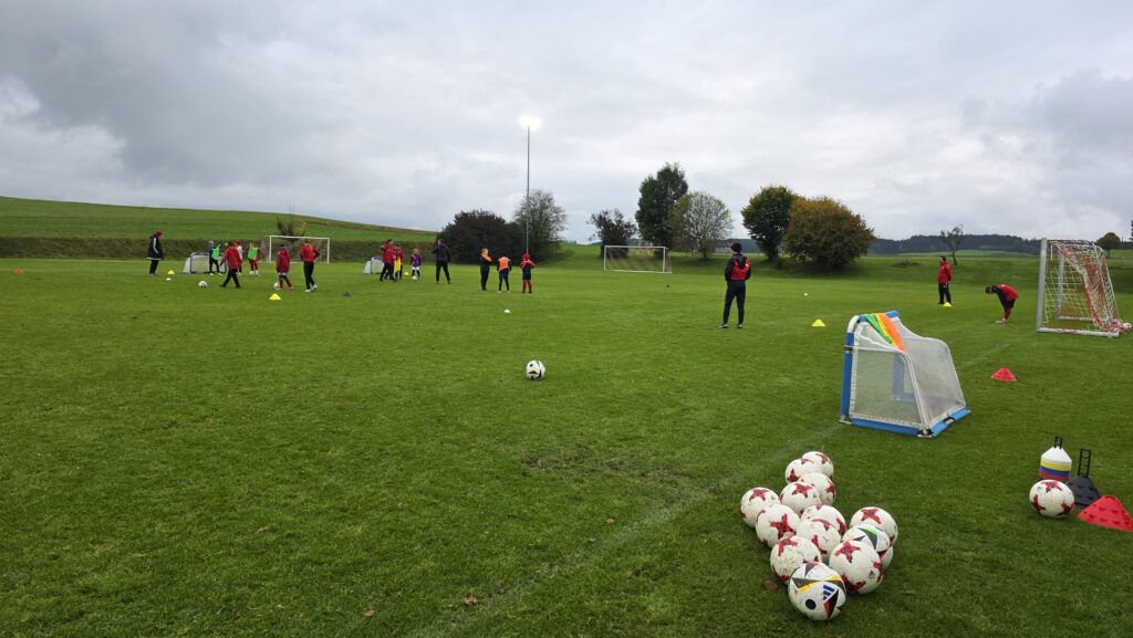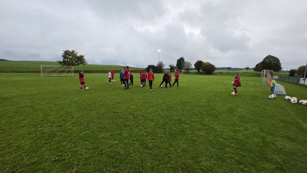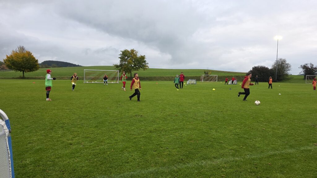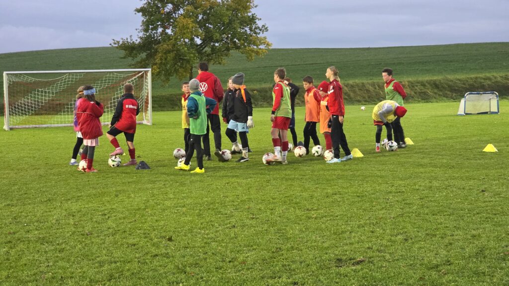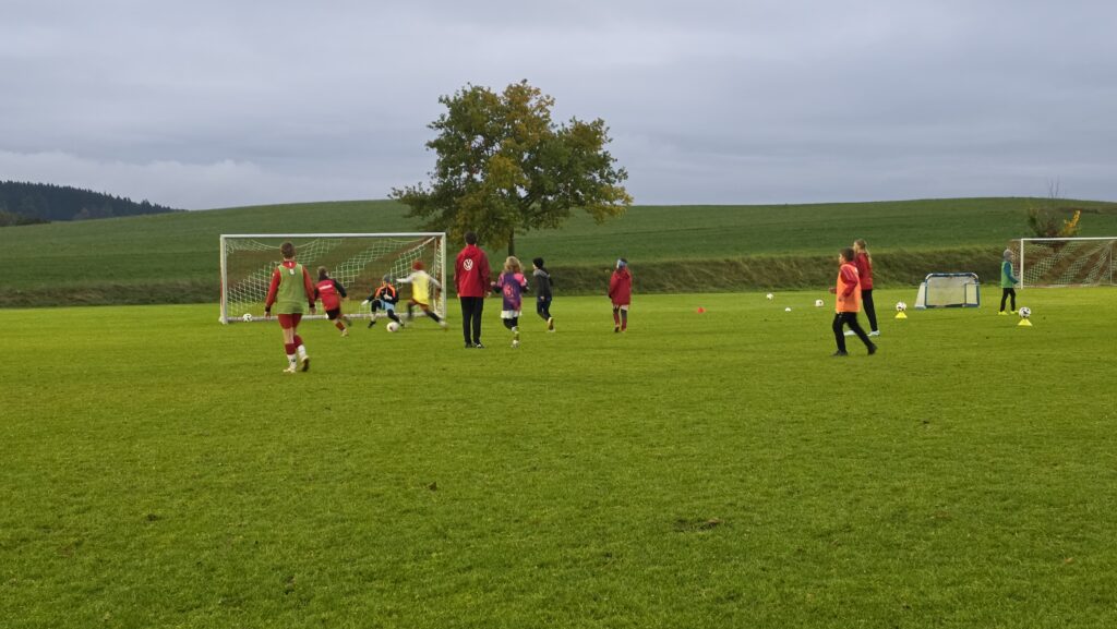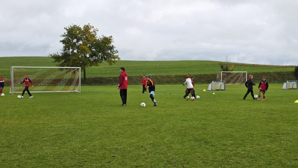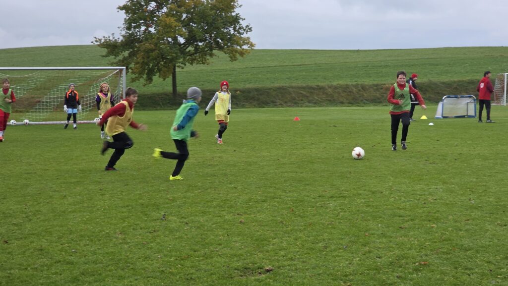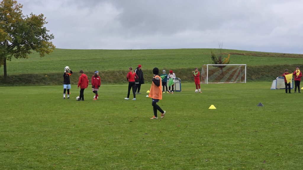 Unsere Kids (insgesamt 14 im entsprechenden Fussball-Alter), aber auch die Trainer (13 Trainer*innen, auch aus einem unserer SG-Vereinen) erhielten über 90 Minuten hinweg viele Informationen und Trainingsmöglichkeiten an die Hand. Den Kids machte es sichtlich Spaß.