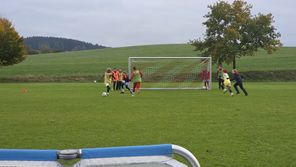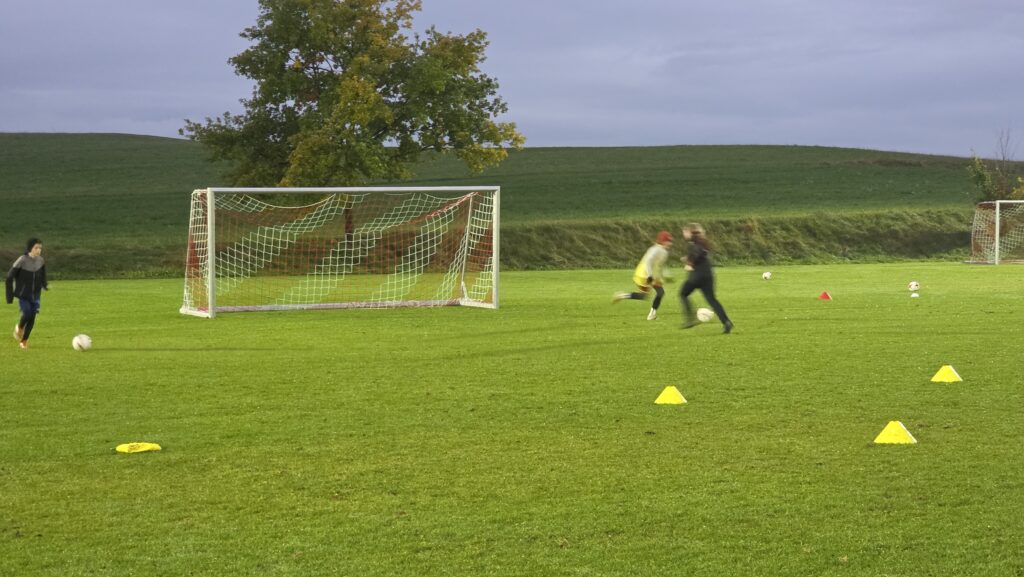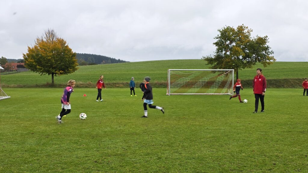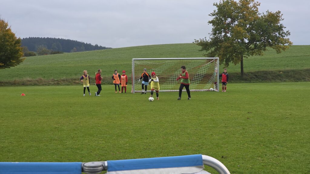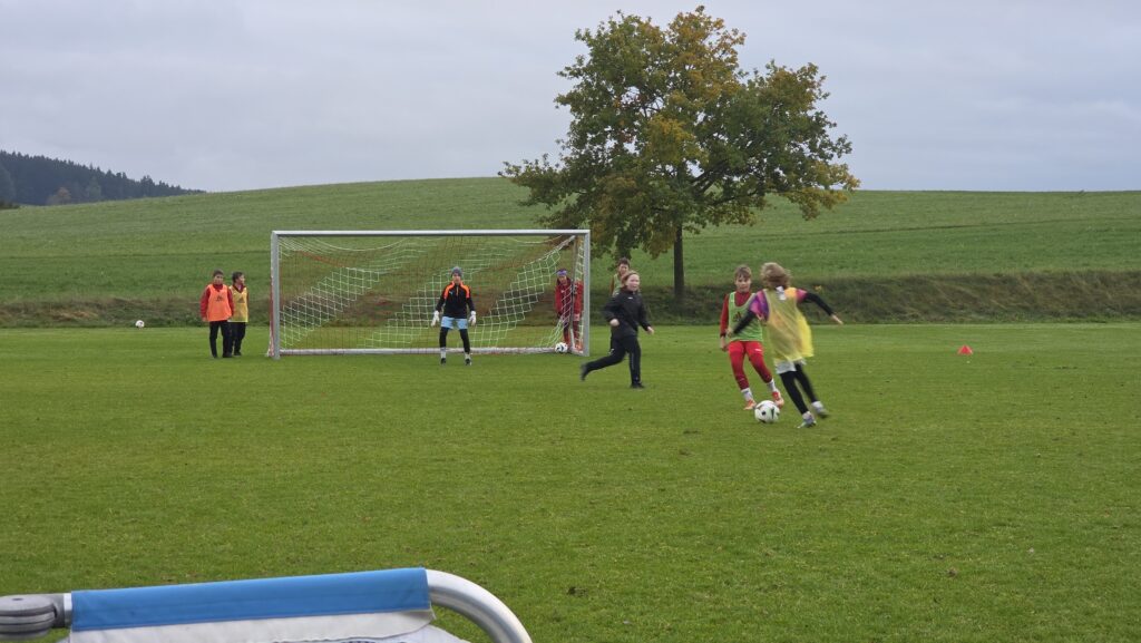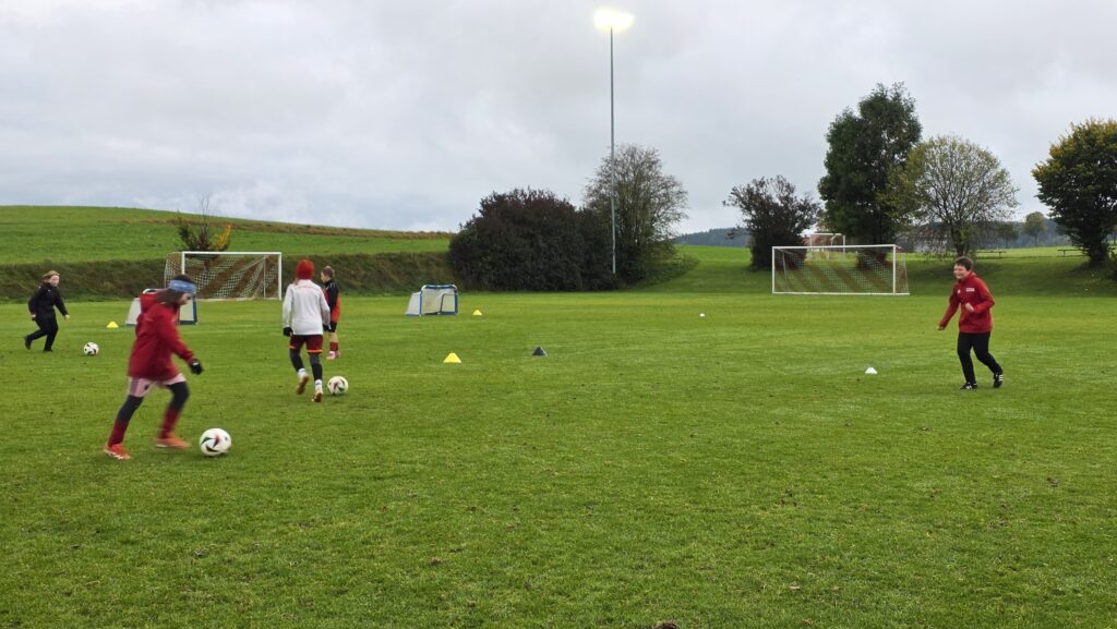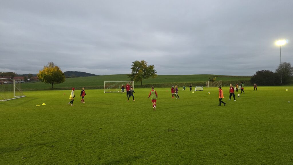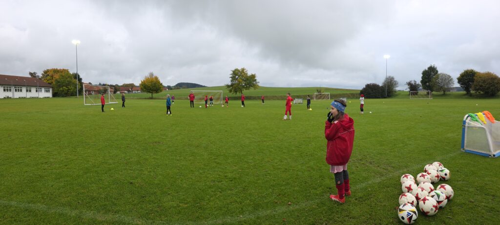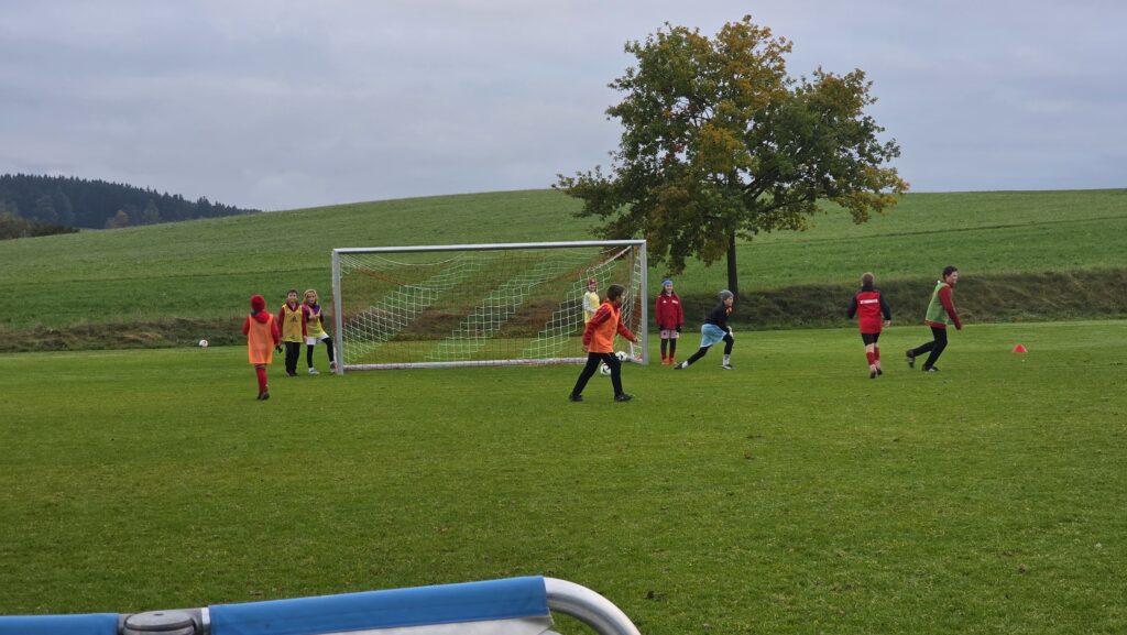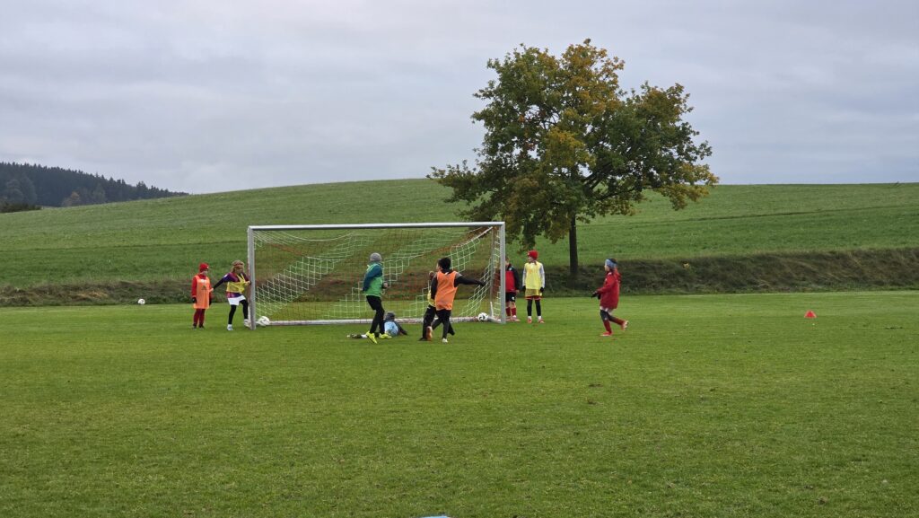 Unsere Kids (insgesamt 14 im entsprechenden Fussball-Alter), aber auch die Trainer (13 Trainer*innen, auch aus einem unserer SG-Vereinen) erhielten über 90 Minuten hinweg viele Informationen und Trainingsmöglichkeiten an die Hand. Den Kids machte es sichtlich Spaß.